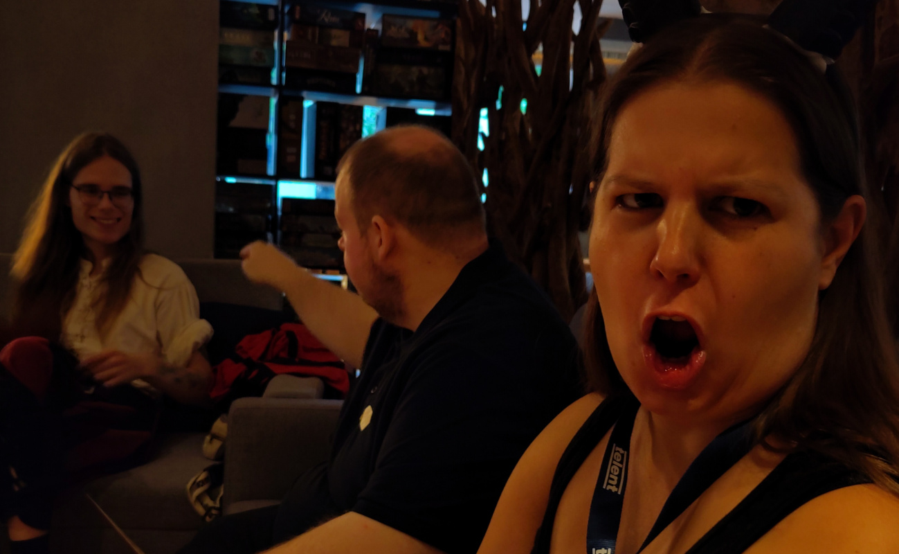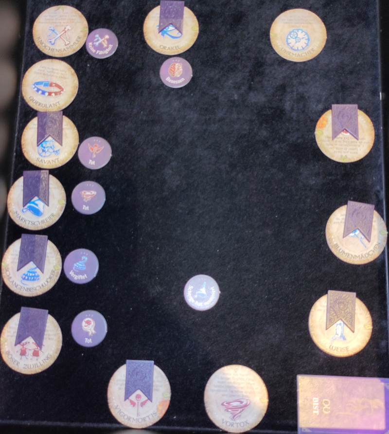 - Am ersten Tag habe ich in kleinen Gesprächen bei anderen nach starken Charakteren gefragt als ich mich potentiell ausgeben kann, jedoch wie das am ersten Tag ist, vertraut einem keiner. In der großen Runde hat dann Yvonne ihre Info über Schlangenbeschwörer, Schergen (Martin und Anke) und Bluffs (darunter der Träumer) geteilt. Für mich war das sehr schlüssig, da Yvonne 3 Charaktere als Bluffs geteilt hat, die auch keiner hatte, bis auf Felix, der sich als Träumer ausgegeben hatte. Yvonne hat dann Felix zur Hinrichtung angeklagt, weil ihre Vermutung groß war, dass es der Schlangenbeschwörer ist. Auf die Chance, dass ihre Theorie richtig ist, habe ich für Felix abgestimmt, was sich auch einige andere Spieler gedacht haben. Wodurch Felix mit 7 oder 8 Stimmen hingerichtet wurde. Das Spiel war nicht zu Ende.