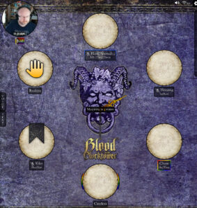 Blood on the Clocktower lässt sich sehr bequem im Browser online spielen. Man benötigt dazu lediglich ein Gerät mit Mikrofon und am besten auch Kamera, beispielsweise ein Tablet, Laptop oder Computer. Man sieht sich selbst und die anderen Spieler im Kreis und kleine Balken zeigen an, wer gerade spricht.